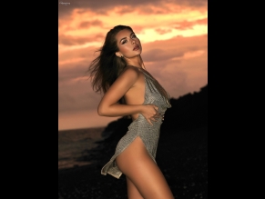 Anastasia Rine Sexy Beach Photoshoot Posing Her Sultry Figure In A Sensual Silver Dress
