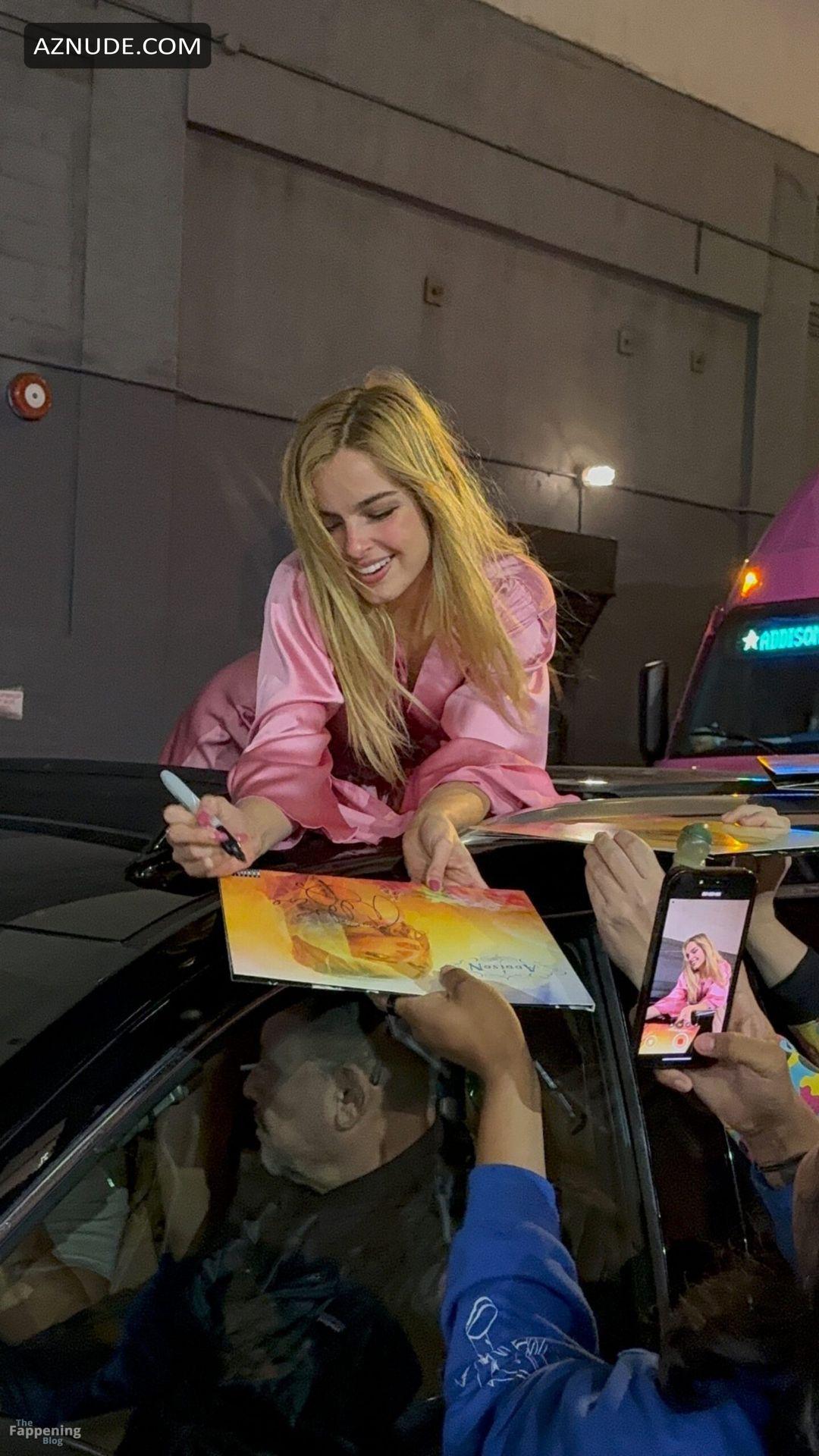 Addison Rae Sexy Flaunts Her Toned Legs Wearing A Pink Mini Dress In NYC