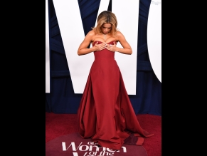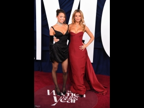 Emily Ratajkowski Posing In Emrata Outfit On The Red Carpet Of The Vanity Fair Oscar Party In Beverly Hills