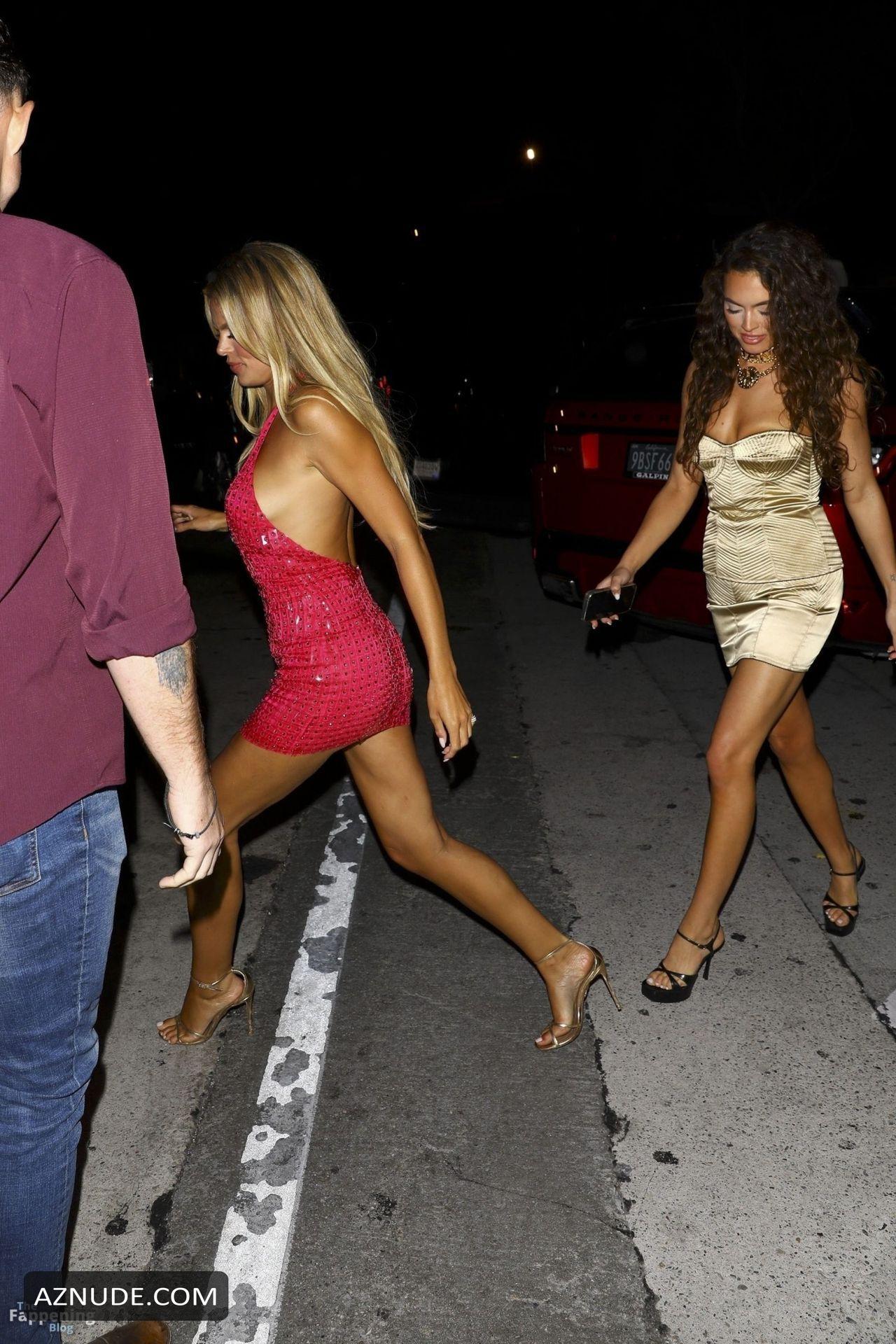 Brooks Nader Sexy Shows Off Her Hot Tits And Legs In A Pink Rhinestone Mini Dress At A Party In West Hollywood