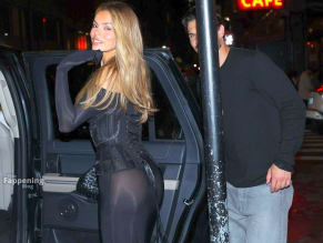 Brooks Nader Sexy Spotted Flashing Her Hot Booty And Thong In A Sultry See-Through Black Dress In New York City