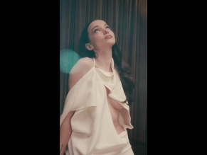 Dove Cameron Sexy in White Dress And Breasts