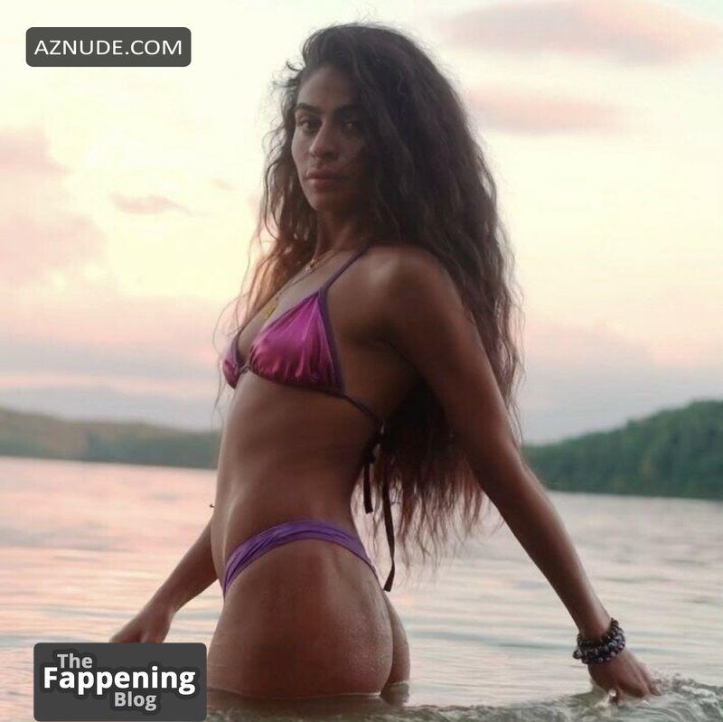 Montana Brown Sexy Displays Her Curvy Beach Body In A White Swimsuit At Caribbean Paradise