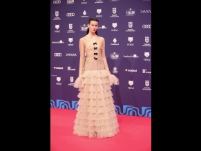 Milena Smit Sexy Seen Braless Showing Off Her Small Tits In A Red Dress At The Feroz Awards In Spain