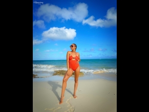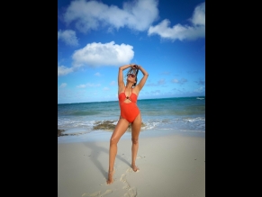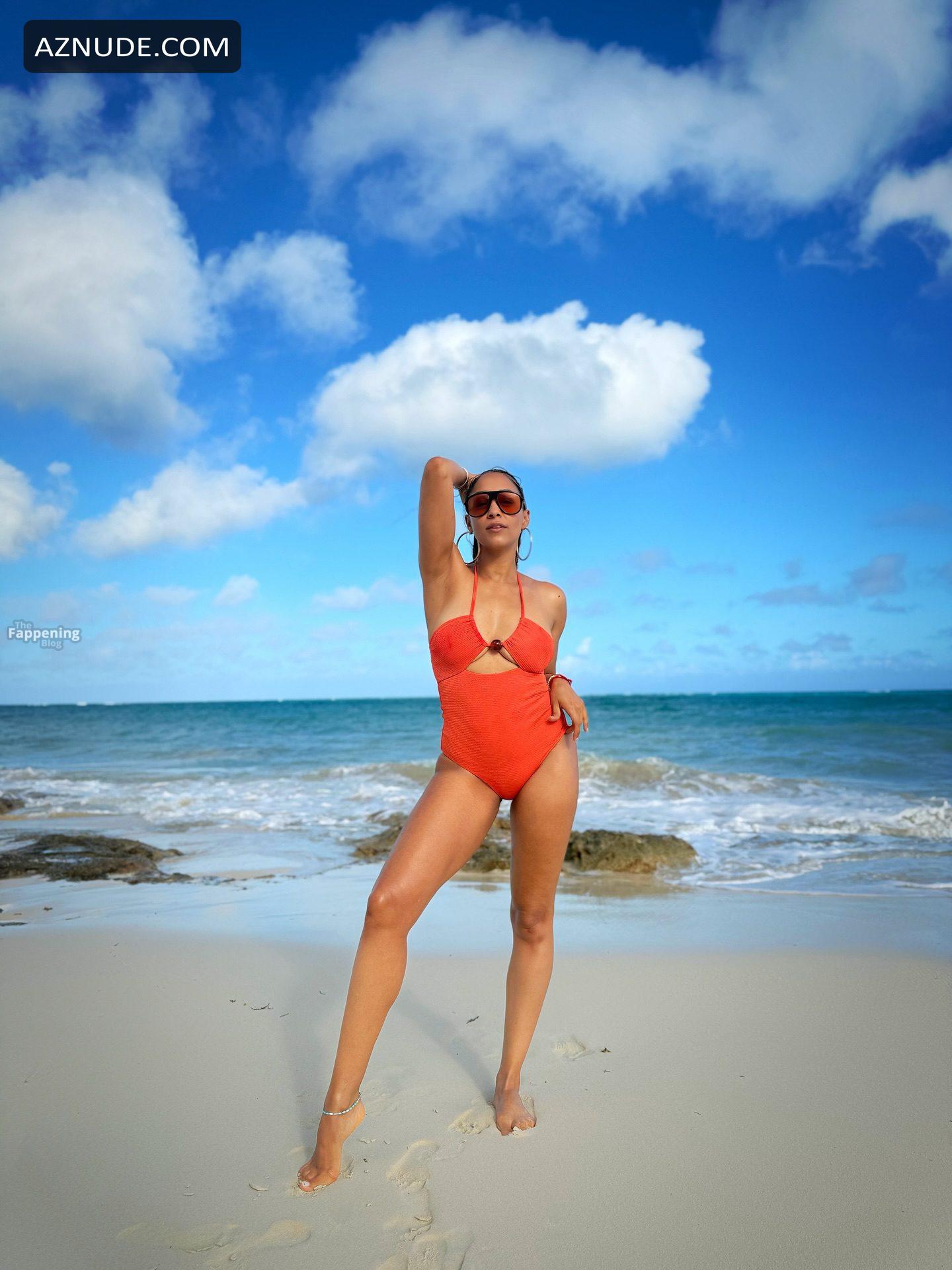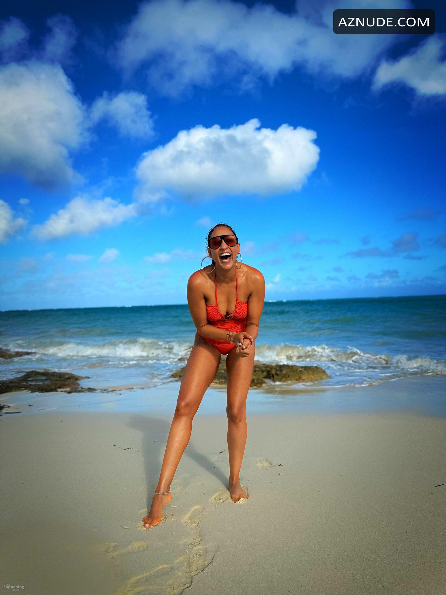 Tia Mowry Sexy Shows Off Her Sizzling Body In A Hot Orange Swimsuit At The Bahamas Beach